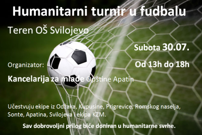 U subotu 30.07.2016. godine sa početkom od 13 časova, održaće se turnir u fudbalu humanitarnog karaktera na terenu O.Š. Svilojevo.
